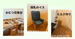 立川PLAY!PARY内にはおむつ替え、授乳室、調乳室がそれぞれありました。
